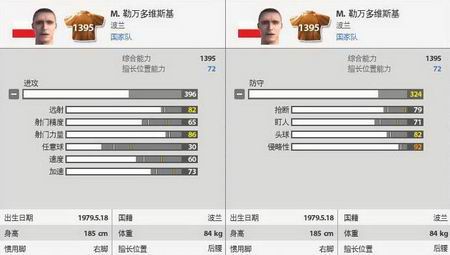 目前效力于波兰国内的波兹南的莱万多夫斯基是一名优秀的后腰,这位典型的东欧风格球员身体硬朗体能优异。左右脚技术均衡并且整体意识好,《FIFA online 2》中他拥有一脚82数值的远射并且脚头很硬,射门力量达到86.并且在防守上324点的数值已经相当优秀。在游戏里绝对是值得玩家使用的波兰籍球员之一。