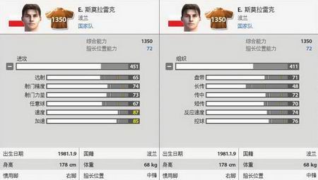 斯莫拉雷克应该算是波兰足球的当家球星了,这位随波兰国家队参加过2006年德国世界杯的前锋曾经是德国多特蒙德队的主力前锋。虽然目前状态比较低迷,但不过29岁的年纪也还有焕发足球第二春的可能,在《FIFA online 2》中这位前多特蒙德中锋速度87,加速85,如果玩家使用得当在游戏里也能起到奇兵效果。