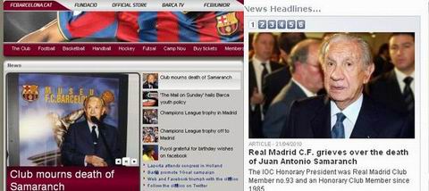 在****逝世后,两支西甲巨人球队也第一时间在自己的官方网站表达了对这位体育界伟人的哀思,虽然此时席间冠军在两队之间激战正酣,但是此时此刻大家忘记了敌意,都一起来为体育界的巨大损失而悲痛。