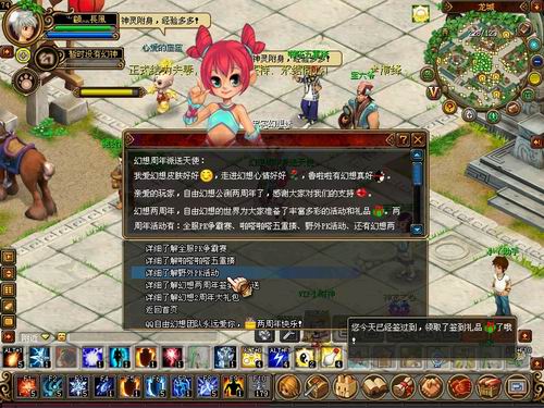 完成两周年每日签到活动的每位玩家可以获得三枚兑换两周年宠物所需的珍贵道具“幻想兔碎片”,如果你能坚持从每天签到的话,从活动开始到结束你就能获得足够换取幻想兔碎片哦。同时玩家还能获得炫目称号、高额经验。