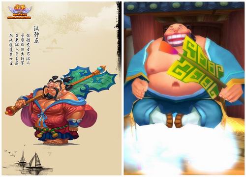 传说汉钟离当年乃是号称天下第一闲散汉子,因此两个版本的汉钟离都是一副懒洋洋笑容可掬的样子。无论从风格还是感觉上,两者都如出一辙。只不过动画版的汉钟离是采用全3D制作,并不像《蓬莱》采用了全新的3D优化技术,所以显得画面的精致程度远远逊于《蓬莱》中的汉钟离。