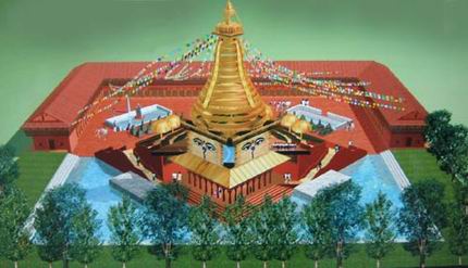 尼泊尔展馆独特的塔形设计,多了一分神秘与威严,与《战国风云》中神迹剑冢的造型如出一辙。在城中建造剑冢,其神力能保护城池不被敌人占领。