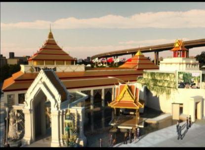 泰国展馆渗透出浓浓的东南亚风情,这独特的尖顶、吊脚楼,和《战国风云》里的水上要塞像不像?