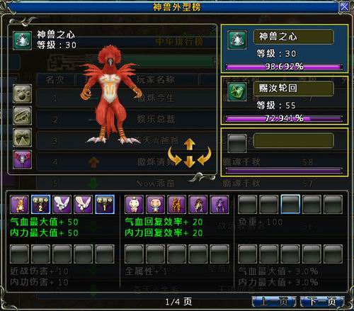 神兽外观:集齐5大神兽外观就能获得一次任务属性加成机会,加成多少?收集齐头5个神兽外型,就能获得气血同时获得50点加成的效果。神兽外观同时不影响神兽的任何攻击性能!难怪这些售价不到100银币又可爱无比的【伯爵蝙蝠】与【小野兔】成为街头流行配置。