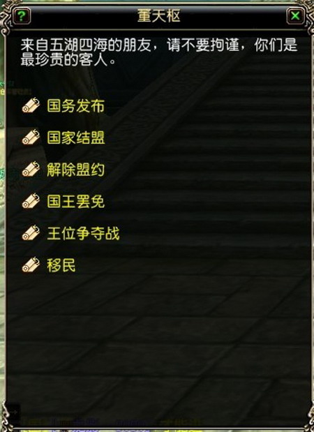 移民,让你过把谍战的瘾!但是,想要体验移民的成本也是不低的哦,为此你需要支付一大笔银币哦!而且七天之内不允许再次移民!囊中羞涩的可要加紧存钱了!