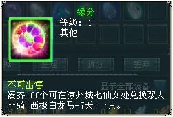 副本中你和你的另一半合力铲除捣乱的猴妖,完成任务不仅可以获得海量经验,更可以获得“缘分”,集齐100个“缘分”,便可以在七仙女处兑换缘分版的西极白龙马。7天的时限,每天贴身坐在马背上,足够让一对痴男怨女修成正果了……