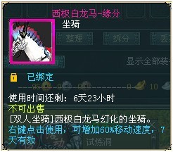 和你中意的那一位组队完成仙缘任务吧,不仅仅可以获得仙缘值,更会有意外的奖励哦。2个小时的双人坐骑——西极白龙马。