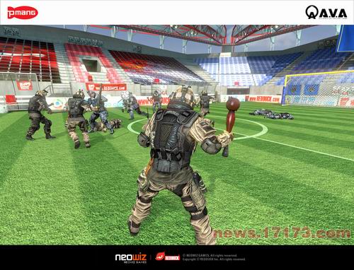 在攻击时,球或担当足球的角色进入球门就会得分,守备时只要用近战武器攻击跑向球门的对方即可。该模式虽然简单,但也需要战略,玩家在攻击和守备的过程中可以体验紧张感十足的战斗。(文/17173小韩)