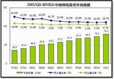 然而时过境迁。随着近年以来,中国网游市场规模的增速逐步放缓。由于国外投资者对中国市场缺乏了解,对企业的判断极为敏感,营收数据直接影响着股票的起落。于是,2010年伊始,多年以来风光无限的中国网游股们首次遭到了前所未有的冷遇,纳斯达克的中国网游股全线下挫。我们不禁要问:十年高速发展之后的网游行业,是否已经遭遇瓶颈?