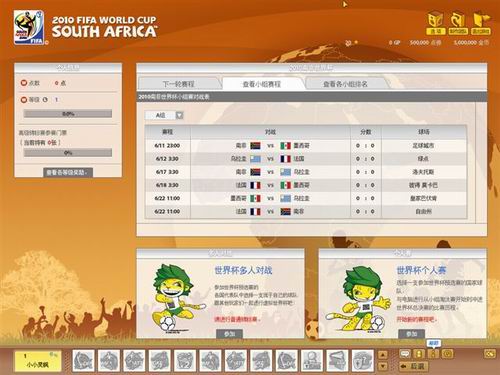 《2010 FIFA 世界杯Online》全新改进的页面给人一种清新自然、耳目一新的感觉,同时四年一度的足球盛宴,用一个南非特色的黄色基调进行粉饰可以说再也贴切不过。此次《Fifa Online 2》世界杯版进行了多处细小的改进,让玩家在游戏体验方面得到了很大的提升。例如:1、在界面的左下角新增了任务状态栏,玩家可以通过任务栏迅速查询自己所进行的任务状态。2、对任务进行了更新,新增了一些有趣的任务完成标志(游戏中积累100万LP的标志是个猪头哦),为游戏平增了不少搞笑元素。3、按键设定简述更加丰富。