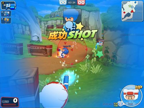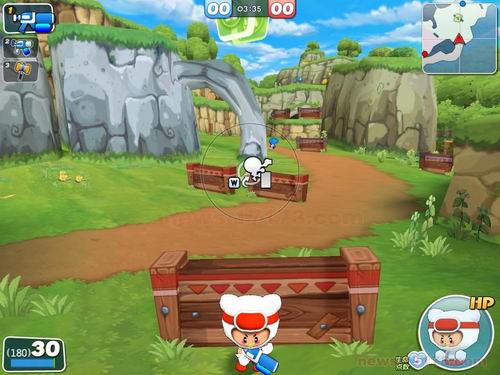 卡通射击网游,泡泡堂系列新作《泡泡战士》(简称BF)近日在盛大的一场发布会上正式公布,而17173今日独家获取了该游戏的一组汉化截图。看来盛大早已着手《泡泡战士》的汉化工作,甚至已接近尾声。
