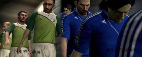 《2010 FIFA 世界杯Online》在5月底开启测试以后,随即放出重磅炸弹即将对《2010 FIFA 世界杯Online》的游戏引擎进行更新,这对于目前市面上任何一个游戏来说都是史无前例的,毕竟任何一个游戏在开发之初就要选定自己的引擎,正所谓“牵一发而动全身”直接更换游戏引擎对于很多游戏来说都是致命的打击。而《2010 FIFA 世界杯Online》却选择满足广大玩家的需求,在不久之后进行引擎更新,并且《2010 FIFA 世界杯Online》将要更换的是最新的《FIFA 10》的图像引擎,让我们先来看看新引擎下《2010 FIFA 世界杯Online》的表现吧。(对比图片的左侧为旧引擎的画面,右侧为新引擎的画面)