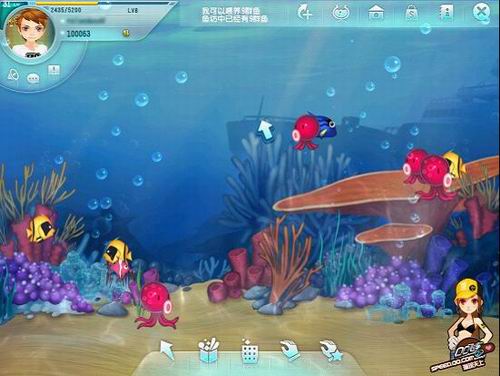 飞车鱼坊的整个界面晶莹剔透,是不是相当的漂亮?水底的气泡和光影表现得惟妙惟肖,和缤纷海底植物以及各种鱼儿相得益彰,让我们仿佛置身于奇妙的海底世界中。不同的鱼儿还会自言自语哦,真有意思!