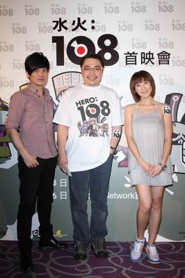 游戏橘子原创动画水火108首映,张本瑜 关德辉与游戏橘子执行长刘柏园(中)合影