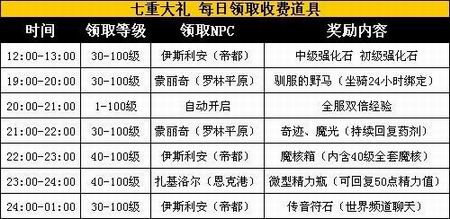 七重大礼全服开启 每日50元收费道具免费任拿!