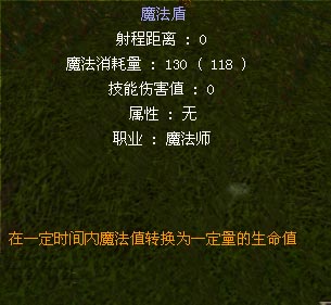 魔法盾——魔法师,一个生命值防御都偏弱的职业,如何在战场上生存?魔法盾的出现,大大增加了其战场存活率。将自身强大的魔法值转换成一定量的生命值,再也不必为生命值较少而担忧,不必担忧战场上被无情的秒杀!