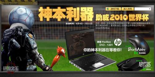 四年的期待,在6月的南非点燃梦想的激情。在这个全球狂欢的日子里,AVA携世界杯版本推出了“神本利器,助威2010世界杯”主题活动,用AVA的方式,全民共High,预测谁将夺冠!在6月4日—7月11日间,从第一轮小组赛,到半决赛、决赛,玩家只需在活动页面投票预测,就有机会获得笔记本、鼠标、纪念品道具等超值奖励。支持自己心目中的王牌球队,从这里开始。