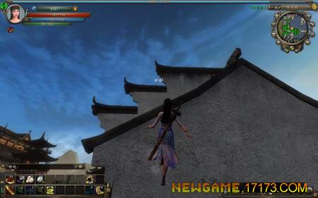 游戏内置轻功系统,玩家在很低级时就能学到,有飞檐走壁,水上漂等。