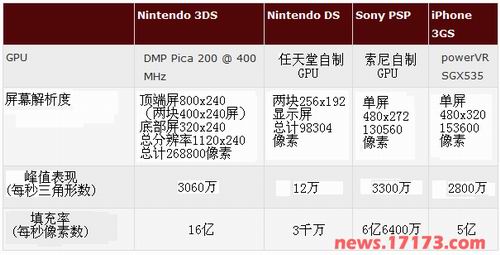 随着任天堂在今年E3展会上公布了开发中的次时代掌机N3DS,日本一家游戏媒体近日也对四款主流掌机的简单数据做了一个对比(小编弱弱问:Iphone不是手机吗?),同时在评论中出现了一张任天堂3DS和PSP在运行《合金装备》的画面效果对比。从数据上来看,N3DS已经全面超越了PSP,并且在裸眼3D技术上对玩家的吸引力也非同一般,记得索尼北美分公司的市场和产品总监在去年曾说过PSP有10年产品寿命,至少要到2014年才会发表下一代产品,不知道现在他是否还会如此确信呢?