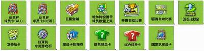 为庆祝《2010 FIFA 世界杯Online》引擎升级版的到来,本次足球大亨为您准备了众多惊喜礼品,让您在新引擎的绚丽画面中享受足球带来的无限乐趣!世界杯球员卡(32强)、世界杯球员卡(所有)将为您带来珍贵的世界杯球星,巨星宝箱中的黑卡同样等待着您来获取!扭蛋机专用游戏币、国家队球员卡、球员卡防爆券、红色球员卡等众多珍贵道具也已经一并亮相!