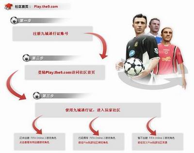 1.使用您的九城通行证,登陆Play!玩家社区(http://play.the9.com),并绑定游戏角色。这样您在足球大亨中获得的奖品,可以顺利的发放至您FIFA Online 2的账号中。