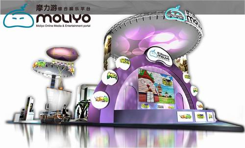 为本年度的全新亮相,摩力游此次在Chinajoy(以下简称为CJ)上也花了不少心思。发布会上作为本次CJ负责人的摩力集团市场及营销总经理赵伟先生也对此作了介绍。这次参展CJ,是摩力有史以来最全面、最新颖、最具规模的一次展现。展台位于W3号馆14号展位,面积将近有400平方米,整个展台以紫色圆球形设计,高达近8米,将会是3号馆最显眼的展台之一。展台注重玩家的游戏体验和参与,特别规划的视频体验区域将给玩家带来一个全新的亲近游戏的方式。
