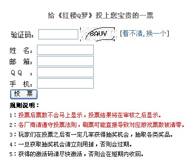 从即日起,只要玩家在此页面为《红楼Q梦》投票,就可获得意外神秘大奖。同时,票n数越多,公会奖励就越惊人。