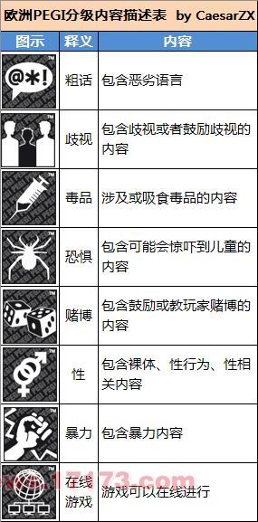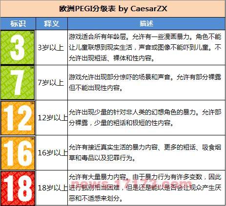 3.根据发行商填写的内容,PEGI根据自己的分级内容描述规定来对游戏进行年龄分级。