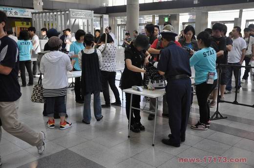 在通过主入口后,所有观众都需要接受详细的安检,将自己包里所有物品掏出供现场的工作人员检查。