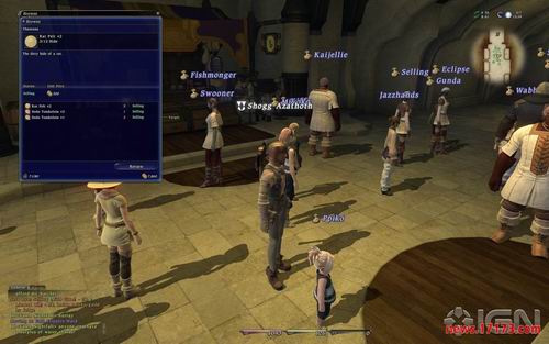 除此之外,玩家还会问出无数的“怎么办呢?”。在玩家可以挣钱后,就可以去追求新的装备和其他重要的物品了。但是如果想要找到自己想要或者急需的物品,就得面对无数的垃圾设计如雪崩般地压在身上,浪费很多时间。地图上会标识重要的NPC商人中很少的几个,而绝大多数的商人都呆在商业区,这些商业区的商人是不会在地图上标识出来的。而玩家来到了商业区后,则会发现很难知道哪个商人是卖什么的,因为,绝大多数的商铺都没有牌子提示他们是做什么生意的。在玩家记熟每个商人的货品前,只能到处瞎点,指望在某个商人处能买到自己想要东西。玩家间的交易也充斥着类似的各种不便之处。目前游戏里还没有拍卖行,于是每个角色只能拜托一位“家仆”(retainer)来卖东西,跟摆摊差不多。如果要使用家仆,就得把家仆放置在集市区里,然后让他装备上你想要卖的货物。去集市区购物就如同噩梦一般。首先,玩家得查到集市区在哪里(因为地图上才不会标识出位置呢),然后传送过去,到达后等待所有的家仆都显示出来,然后一个一个地点过去,看会不会有自己想要的东西。