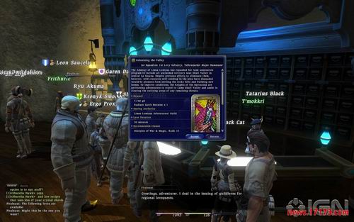 而且更加不幸的是,FF14游戏与其中的世界的联系不多。除了并不常见的剧情任务之外,玩家都是从本地的公会获得任务,这种任务称作levequest(暂译常规任务)。其中常见的是区域任务,而内容都是类似的:来到水晶旁边,激活任务,去完成任务。其中没有任何任务文字说明,也没有其他叙事手段,更没有对角色的发展。常规任务里不会让玩家去接触有意思的Eorzea公民,也不会勾勒出这个世界的背景故事,就是苍白而重复的独立的任务,让玩家去杀某种怪物N只,或者去采集资源什么的,然后只要拿奖励即可。很多常规任务只需要几分钟就可以完成,但是这游戏里有内在的机制限制玩家每36小时只能完成6个任务。于是在随后的若干小时里,玩家要与其他玩家组队去做他们的任务,或者去生产。此外,玩家也可以参加称作behest(暂译谕令)的公共任务。谕令是要求杀许多怪物的任务,每隔1小时可以在各营地接到,而后,FF14就没有什么内容了。角色等级(physical level)达到20后,可以接触到游戏的其他方面的内容,比如在各种各样的阵营中提升自己的地位,还有公会特有的奖励之类,但是要达到20级,可不是一般的累。
