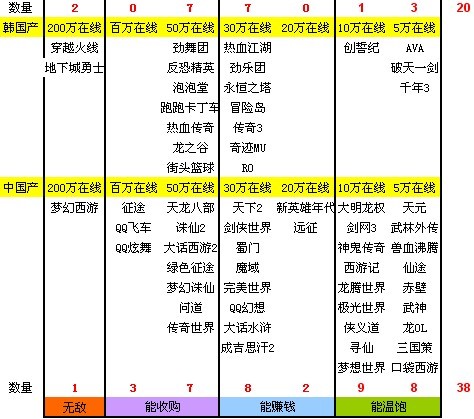 2009年到2010年网页游戏月收入统计