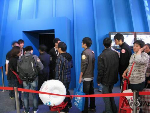 九城展台的《FireFall》神秘大片入口,20分钟进一次,17173记者带您进去逛逛