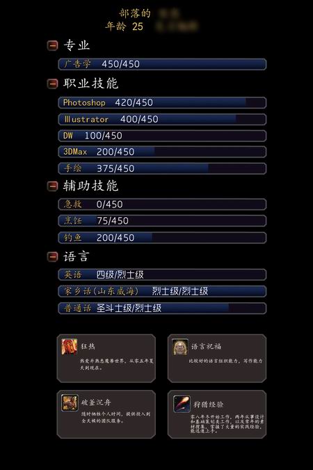 17173编辑近日收到的一则应聘简历,采用魔兽世界风格书写: