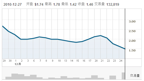 由唐骏出任董事长的联游壳公司大华建设,圣诞节后第一个交易日(27日)放量大跌15.6%,收于1.46美元,继上一个交易日后,再创新低。
