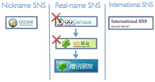 如果不算上腾讯之前失败的QQCampus和QQ校友的话,这个国际社交网站就是继QZone、腾讯朋友之后的第三个社交网站。这些网站都可以连接到腾讯的拳头产品——QQ聊天工具,但目前尚不清楚这几个网站之间能否互访。之前曾有不少人认为腾讯是一个管理高度集中的企业,但从他们社交网站的并列运营模式来看,情况并非如此,正如MarcViolo所言,“我们团队的独立性很强,就好像是好几个小公司同时在一个大企业中运营。”