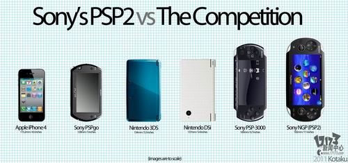 从左往右依次为iPhone4、PSPgo、N3DS、NDSi、PSP3000和NGP