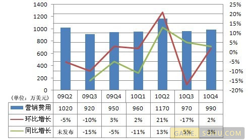 美国通用会计准则产品开发费用为1,300万美元,环比增长27%,同比增长89%。非美国通用会计准则产品开发费用为1,210万美元,环比增长30%,同比增长135%。环比和同比增长主要是由于2010年第四季度聘用了更多的游戏研发人员以及代理游戏所增加的版权费用。