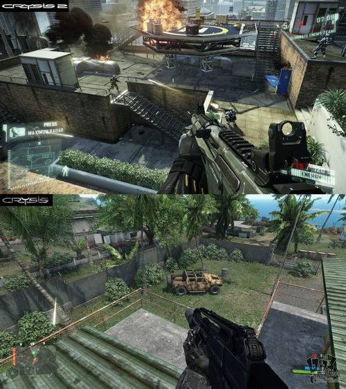 再过两周,被誉为“显卡危机”的FPS大作《孤岛危机》续作即将正式发售。随着本月初试玩关卡的公布,玩家们自然也会将其同前作的画面进行一番对比,以下就是一位玩家使用Amd Phenom II 3.2GHZ、16GB内存和ATI Radeom HD 5670显卡配置在1080P下截图并进行的对比,一起来看看吧:(文:17173 晨星)
