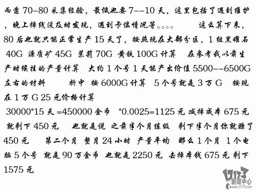 也就是说,1个电脑5个号不封号,那么1个月1个电脑能赚1575元,这里还不包括价格波动啊,你选的区不好材料卖不出啊,封号啊,等等因素~