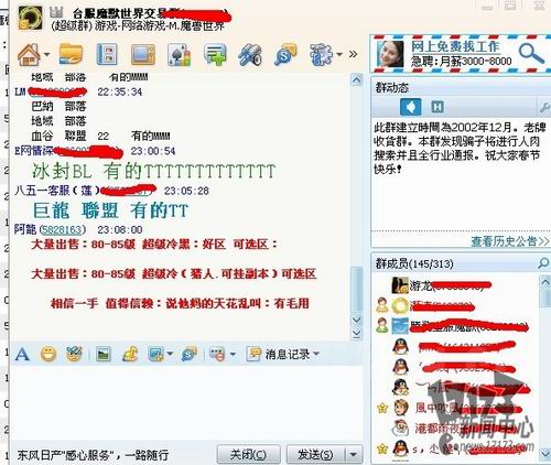 这个是一个工作室群里天天卖黑号的人。所谓黑号,就是这个账号被偷了后,值钱的东西被拿走了。剩下账号在卖给工作室,上挂去采集打G,减少了工作室练级的过程。他的QQ我不隐藏了 你们懂的。金币交易的内幕,其实有很多是普通玩家不知道的。市场的不透明,再加上金币交易本身的不合法性,更造就了混乱的局面。