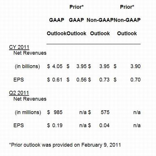 动视暴雪第一季度GAAP每股收益增长到0.42美元,同比2010年第一季度的0.30美元上涨了40%,而根据非GAAP统计则上涨了44%。其中《魔兽世界:大地的裂变》在第一季度的优秀销量是收益增长的主要来源。