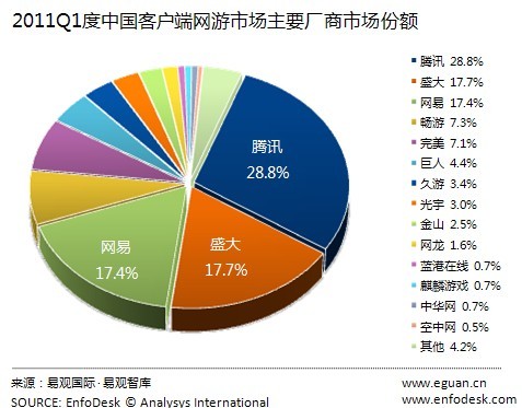 易观:2011Q1中国网游市场腾讯占28.8%