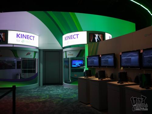 相较于游戏公司的展台,微软的展台更加注重游戏技术方面的展示,大量Kinect的新应用提供玩家试玩,最显眼的位置则是战争机器3的大幅海报。