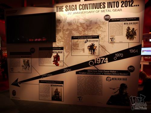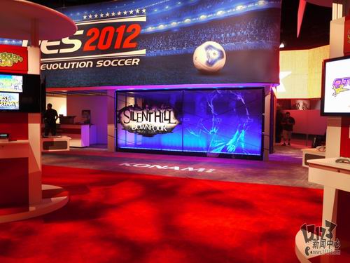 本次参展的科乐美依然以一贯的红色为基调,三款主打的产品分别为《寂静岭:暴雨》、《实况足球2012》和备受瞩目的《合金装备:崛起》,一起来看看吧: