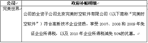 例如完美世界公司的财报中注明了享受免税的年份以及享受半税的年份。由于完美世界公司具有外商投资背景,完全符合“两免三减半”政策。政策中规定“对外商投资设立的先进技术型企业,可享受3年免税、6年减半征收企业所得税待遇”。