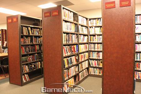 图书馆内部除了各种书籍之外还有很多体感游戏控制器、经典桌游、各种电影DVD等其他图书馆里看不到的东东。书籍种类有电脑编程、美工、经营等实际业务方面的,也有哈利波特等小说。此外,公司员工还可以在网络上浏览自己需要的资料。