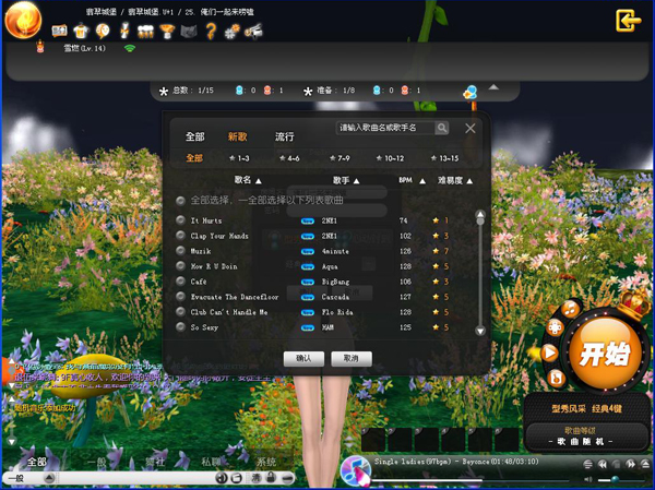 游戏音乐更新很快,曲库收录的基本都是时下最热的歌曲,歌曲随机的状态下系统好像会根据玩家的等级自动筛选合适的音乐,如果想磨练一下那就找个高手混迹的房间一起跳,一定会有收获的。