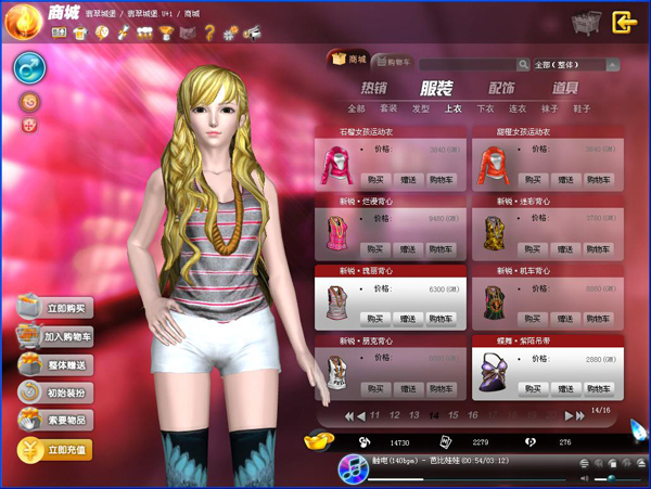 关于游戏商城:改版以后的服装比老版更加细致也更加时尚一些,7月份的商城更新的女装和配饰绝对是精品,相信没有那个MM见了不心动的,男装相比之下单调一些,毕竟男人的衣服总是没有女人的数量惊人,层出不穷,这简直是世间定律啊!扯远了,最近《舞型舞秀》商城降价,服装确实便宜很多,一部分服装改用游戏币来支付,给了玩家以选择的空间,这样一来每天跳跳舞就能换身新行头也不错,不想花钱的完全可以用这个方法。