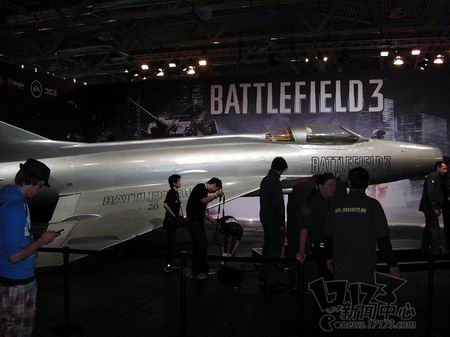 在德国科隆游戏展上,游戏界的大佬EA仍旧是主要的大腕。主打的《战地3》展位上专门搞了台MIG-21的战斗机复制品,实在很酷。(17173 阿树报道)